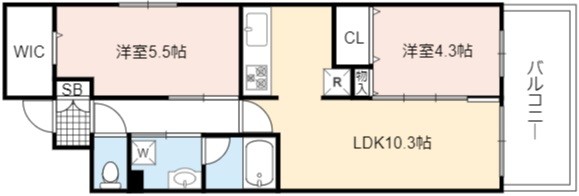 | 間取り詳細 | LDK 10.3畳 、 洋室 5.5畳 、 洋室 4.3畳 |