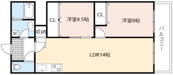 | 間取り詳細 | LDK 14畳 、 洋室 6畳 、 洋室 4.5畳 |