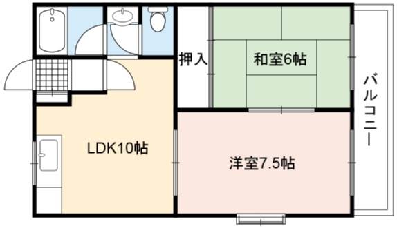 | 間取り詳細 | LDK 10畳 、 洋室 7.5畳 、 和室 6畳 |