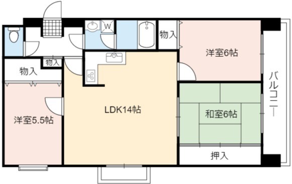 | 間取り詳細 | LDK 14畳 、 洋室 6畳 、 和室 6畳 、 洋室 5.5畳 |