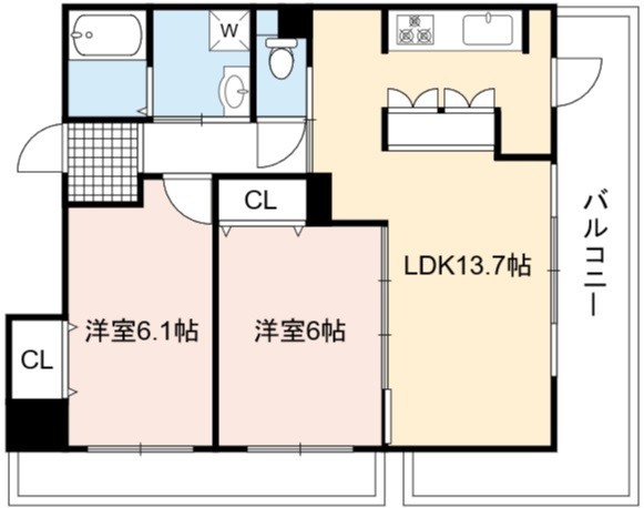 | 間取り詳細 | LDK 13.7畳 、 洋室 6.1畳 、 洋室 6畳 |