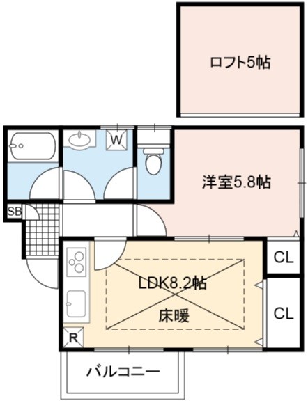 | 間取り詳細 | LDK 8.2畳 、 洋室 5.8畳 |