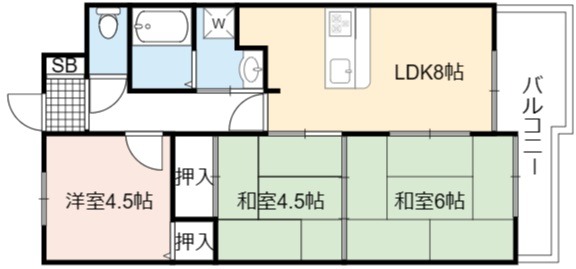 | 間取り詳細 | LDK 8畳 、 和室 6畳 、 洋室 4.5畳 、 和室 4.5畳 |