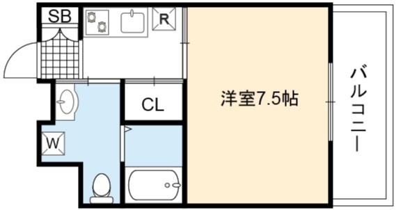| 1K | 洋室 7.5畳 | 21.98㎡ |