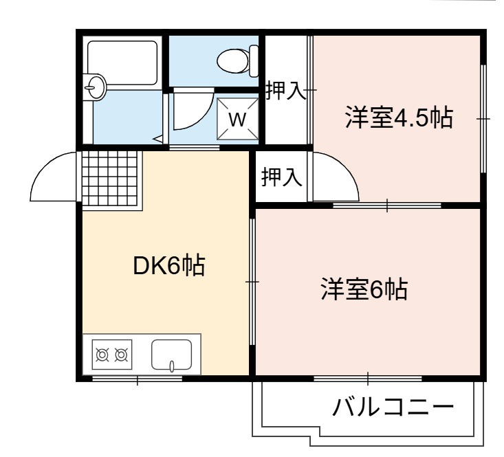 | 間取り詳細 | K 6畳 、 洋室 6畳 、 洋室 4.5畳 |