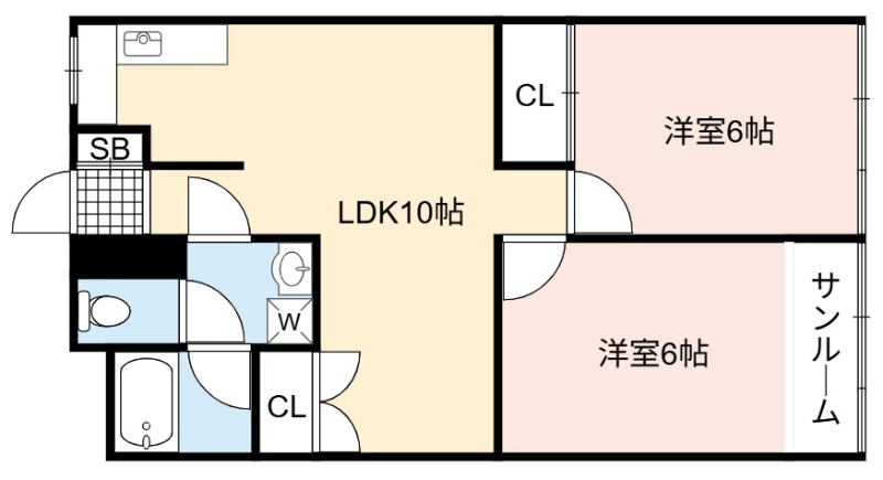 | 間取り詳細 | LDK 10畳 、 洋室 6畳 、 洋室 6畳 |