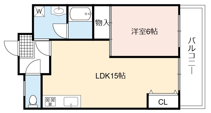 | 間取り詳細 | LDK 15畳 、 洋室 6畳 |