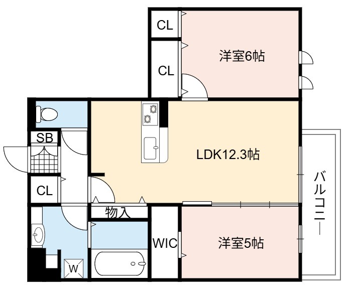 | 間取り詳細 | LDK 12.3畳 、 洋室 6畳 、 洋室 5畳 |