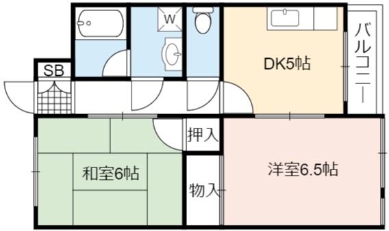 | 間取り詳細 | DK 5畳 、 洋室 6.5畳 、 和室 6畳 |