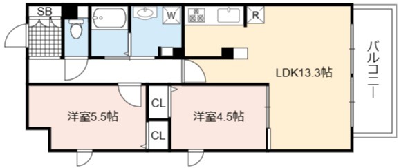 | 間取り詳細 | LDK 13.3畳 、 洋室 5.5畳 、 洋室 4.5畳 |