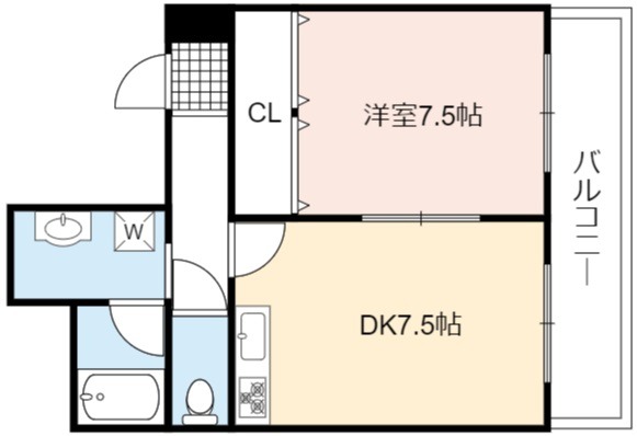 | 間取り詳細 | DK 7.5畳 、 洋室 7.5畳 |
