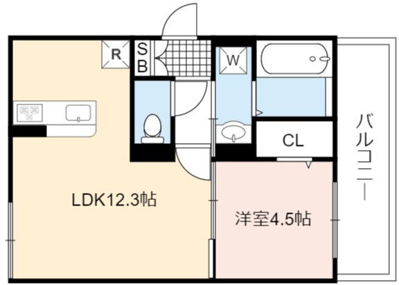| 間取り詳細 | LDK 12.3畳 、 洋室 4.5畳 |