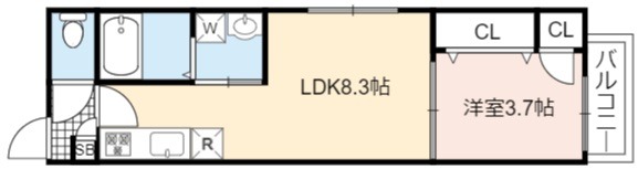 | 間取り詳細 | LDK 8.3畳 、 洋室 3.7畳 |
