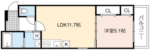 | 間取り詳細 | LDK 11.7畳 、 洋室 5.1畳 |