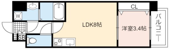 | 間取り詳細 | LDK 8畳 、 洋室 3.4畳 |