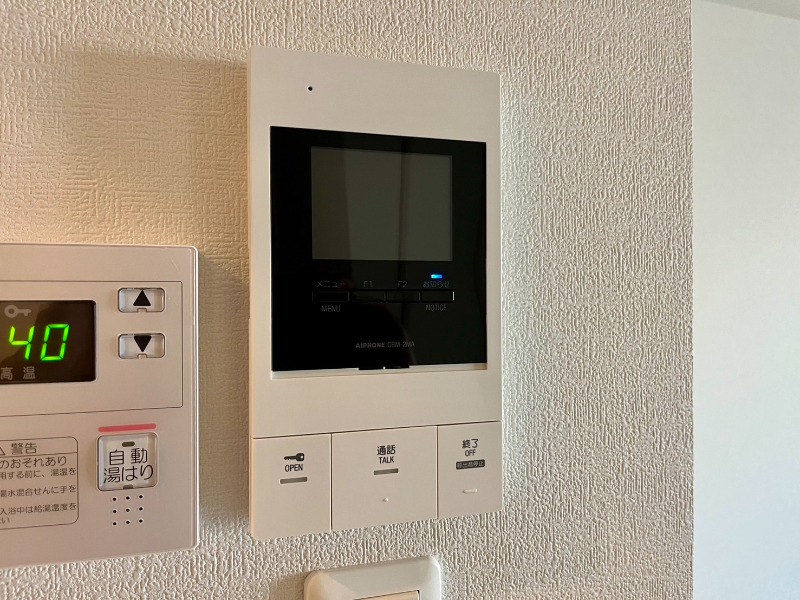 防犯カメラとオートロック付きの角部屋。宅配ボックスや追焚き、浴室乾燥機、温水洗浄便座、シャンプードレッサーあり。