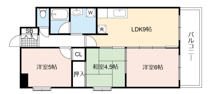| 間取り詳細 | LDK 9畳 、 洋室 6畳 、 和室 6畳 、 洋室 5畳 |