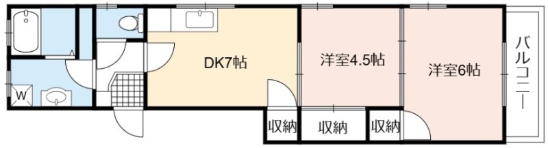 | 間取り詳細 | DK 7畳 、 洋室 6畳 、 洋室 4.5畳 |