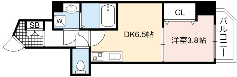 | 間取り詳細 | DK 6.5畳 、 洋室 3.8畳 |