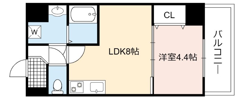 | 間取り詳細 | LDK 8畳 、 洋室 4.4畳 |
