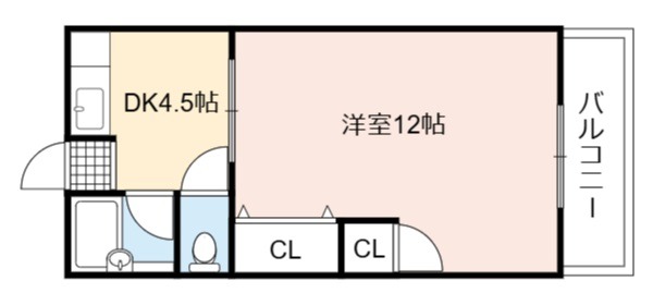 | 間取り詳細 | DK 4.5畳 、 洋室 12畳 |