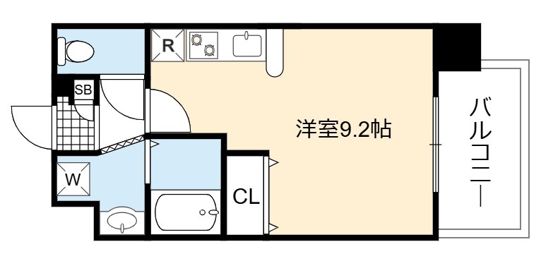 | ワンルーム | 洋室 9.2畳 | 23.22㎡ |