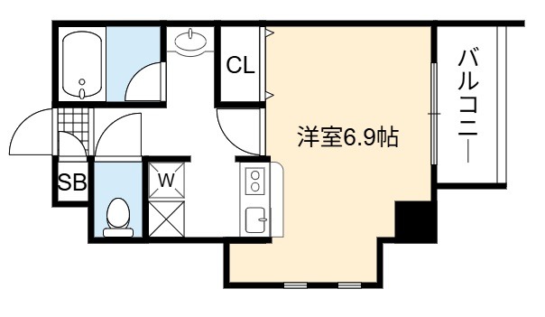 | 1K | 洋室 6.9畳 | 27.45㎡ |