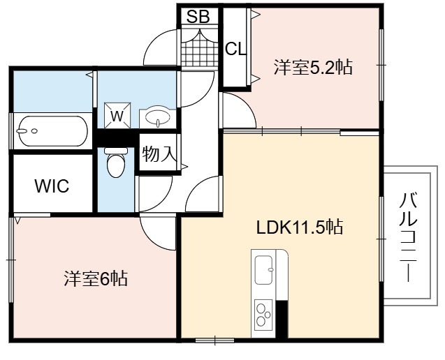 | 間取り詳細 | LDK 11.5畳 、 洋室 6畳 、 洋室 5.25畳 |