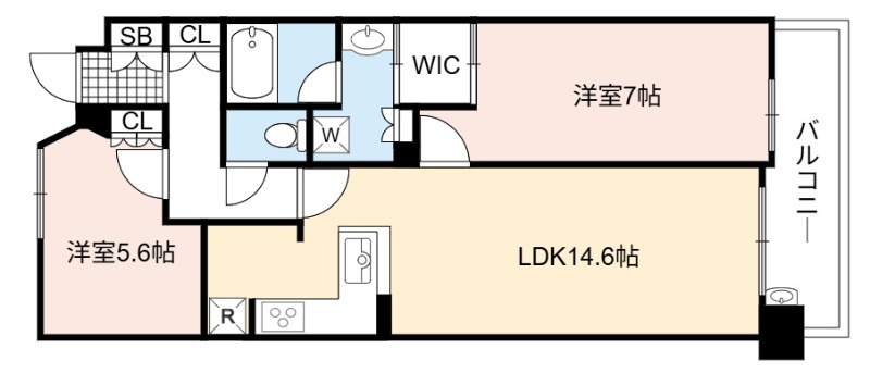| 間取り詳細 | LDK 14.6畳 、 洋室 7畳 、 洋室 5.6畳 |