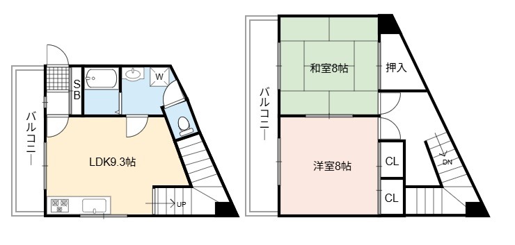 | 間取り詳細 | LDK 9.3畳 、 洋室 8畳 、 和室 8畳 |