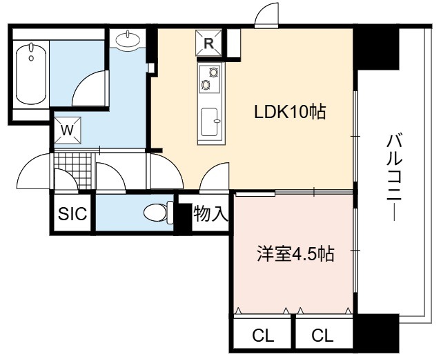 | 間取り詳細 | LDK 10畳 、 洋室 4.5畳 |
