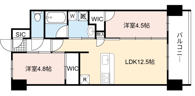 | 間取り詳細 | LDK 12.5畳 、 洋室 4.8畳 、 洋室 4.5畳 |