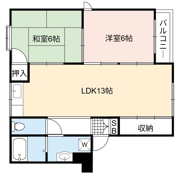 | 間取り詳細 | LDK 13畳 、 洋室 6畳 、 和室 6畳 |