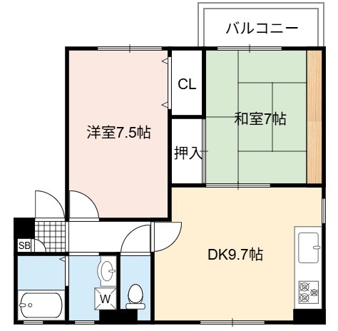 | 間取り詳細 | DK 9.7畳 、 洋室 7.5畳 、 和室 7畳 |