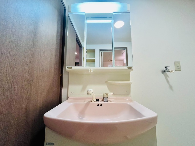 門真南駅徒歩5分の駅近物件。駐車場ありで車利用も安心。エレベーター・防犯カメラ・オートロックを備え、温水洗浄便座やシャンプードレッサーがある暮らしやすい一室です。
