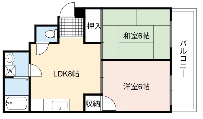 | 間取り詳細 | LDK 8畳 、 洋室 6畳 、 和室 6畳 |