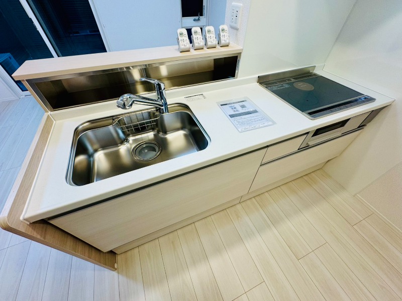 鶴見5丁目の新築物件。駐車場があり、ペットと暮らせる安心のオートロック付き。宅配ボックスあり、角部屋で通風良好。追焚き・浴室乾燥機付きで快適な新生活。