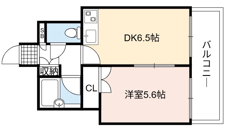 | 間取り詳細 | DK 6.5畳 、 洋室 5.6畳 |
