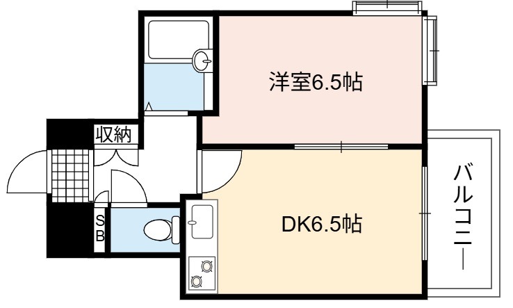 | 間取り詳細 | DK 6.5畳 、 洋室 6.5畳 |