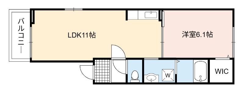 | 間取り詳細 | LDK 11畳 、 洋室 6.1畳 |