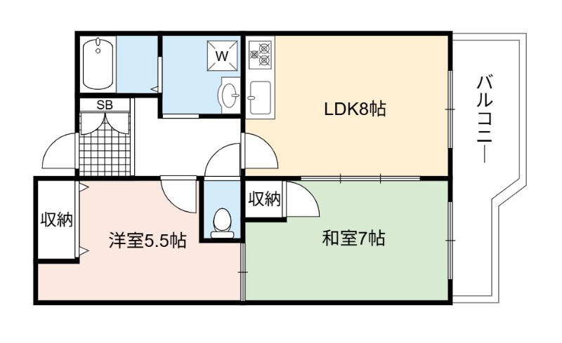 | 間取り詳細 | LDK 8畳 、 和室 7畳 、 洋室 5.5畳 |