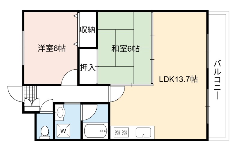 | 間取り詳細 | LDK 13.7畳 、 洋室 6畳 、 和室 6畳 |
