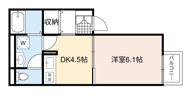 | 間取り詳細 | DK 4.5畳 、 洋室 6.1畳 |