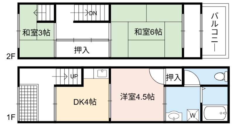 | 間取り詳細 | DK 4畳 、 和室 6畳 、 洋室 4.5畳 、 和室 3畳 |