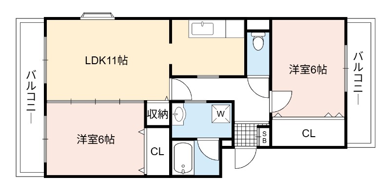 | 間取り詳細 | LDK 11畳 、 洋室 6畳 、 洋室 6畳 |
