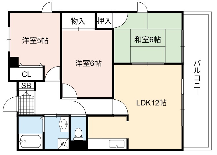 | 間取り詳細 | LDK 12畳 、 洋室 6畳 、 和室 6畳 、 洋室 5畳 |