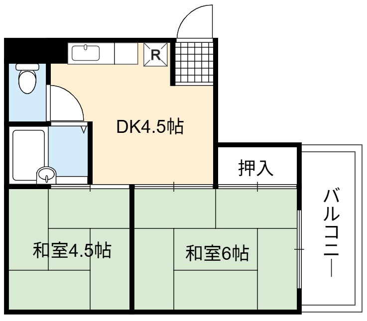 | 間取り詳細 | DK 4.5畳 、 和室 6畳 、 和室 4.5畳 |