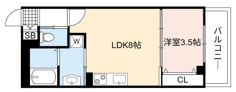 | 間取り詳細 | LDK 8畳 、 洋室 3.5畳 |