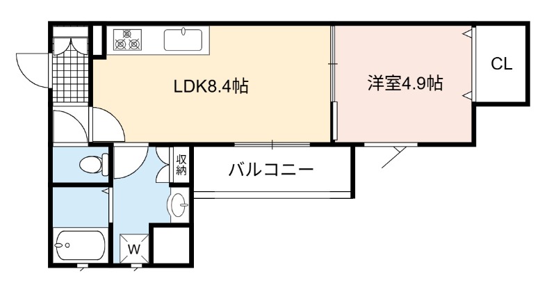 | 間取り詳細 | LDK 8.4畳 、 洋室 4.9畳 |