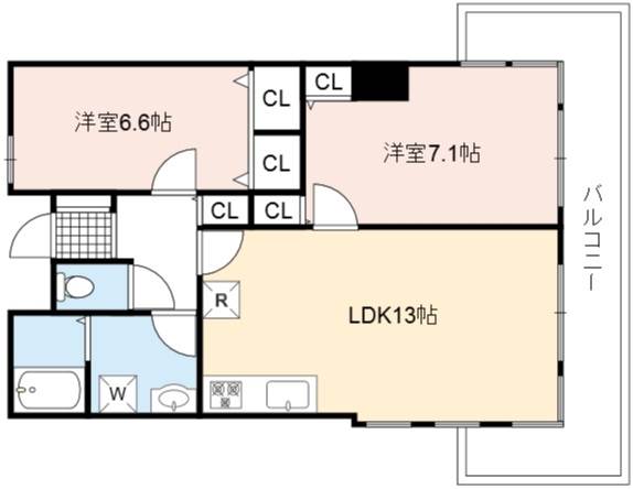 | 間取り詳細 | LDK 13畳 、 洋室 7.1畳 、 洋室 6.6畳 |